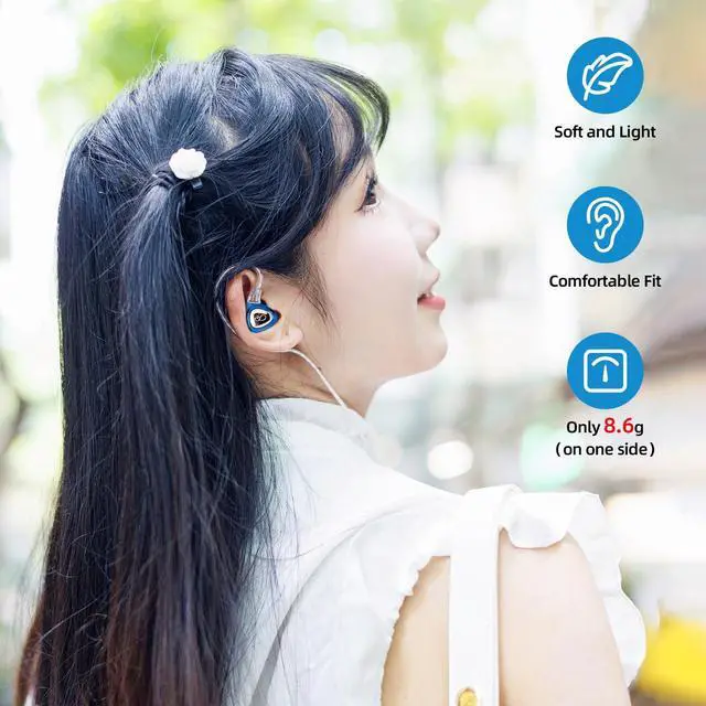 Replaceable HiFi CableSONO Headphones Wired Earbuds Blue comes with a replaceable silver-plated cable. It uses a universal 0.78 dual-pin interface. This enables users have options to replace the stock cable to with-mic cable, bluetooth cable or upgrade cable for different scenarios and more fun. ^^ 2DD+1BA Triple Driver HybridSONO in Ear Monitoradopts 9.2 mm bio-diaphragm dynamic coil and 6.8 mm liquid crystal diaphragm dynamic coil, coaxial sound, special frequency division design, low frequency is smooth and smooth like flowing water, and mid-frequency is full and elegant. And custom-made high-frequency balanced armature driver, the high frequency is delicate, the curve is smooth, it has higher resolution and abundant overtones.