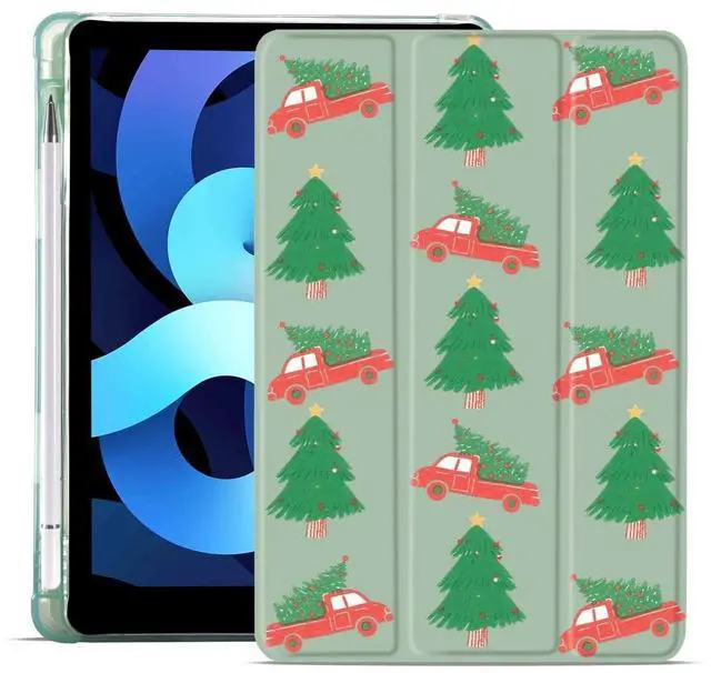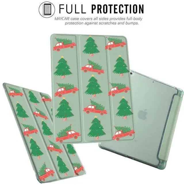 MAYCARI Christmas Case for iPad A16 11 inch 2025 with Pencil Holder, Original Red Truck with Christmas Trees Soft TPU Back Protective Cover Shell for iPad 10th Generation, Auto Sleep/Wake Slim Shell