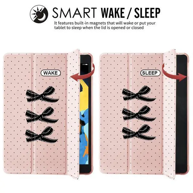 JOYLAND Cute Polka Dot BowCase for iPad A16 11th Generation Case 11 Inch 2025/iPad 10th Gen 2022 10.9 inch with Pencil Holder,Trifold Stand Protective Cover with Soft TPU Back,Pink
