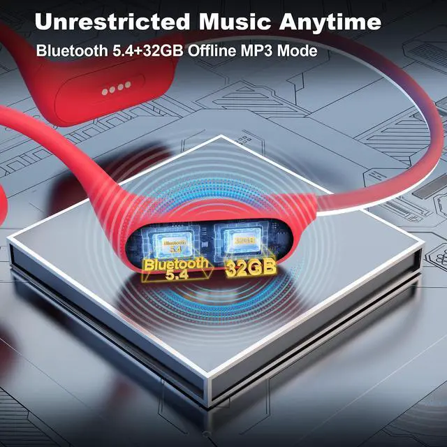 Bluetooth + 32GB MP3 Dual ModeSwitch seamlessly between Bluetooth for daily training and built-in 32GB MP3 storage for swimming.Enjoy stable playback even underwater where Bluetooth is unavailable