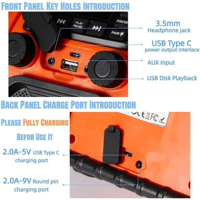 ^^ Portable Handle: Single hand take it to any place you want, it is with construtive fasten manual handle design, light weight and portable to take it along with you. Music and wonderful happiness with beside of you, no matter you are working at contrustion site or travelling. ^^ Meet All Kind of