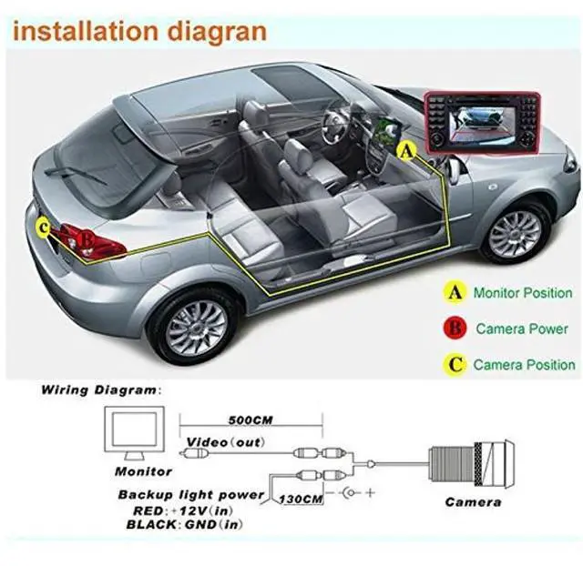 mmPackage includes: 1 x CCD Car Rear View Camera1 x 6M RCA Video Cable1 x 12V DC Power Cable