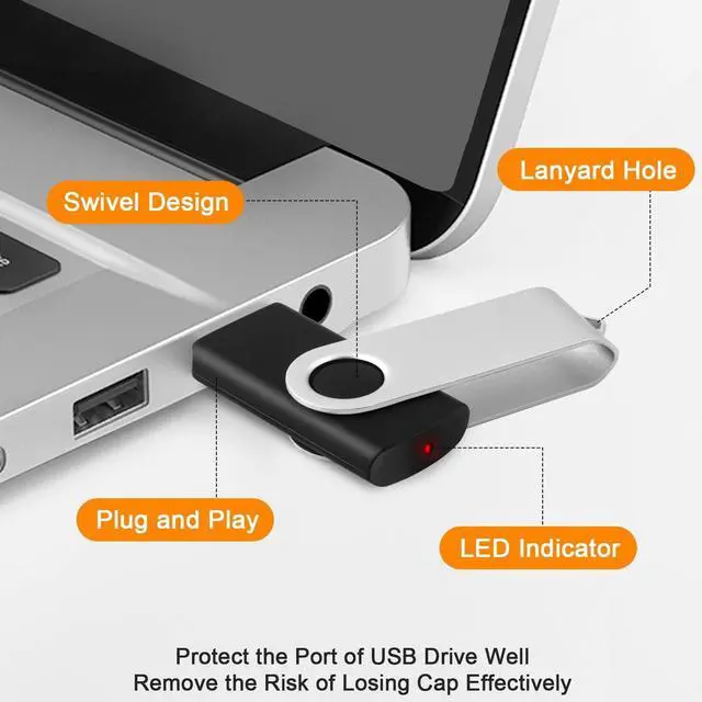 ^^ Swivel Design: With the 360 swivel design, all the ports of the thumb drives 10 pack can be hidden inside the metal casing. When needed, simply swivel the casing gently and the ports will automatically expose, making it convenient for you to insert and remove. This design is not only fashionable and beautiful but also more user-friendly, whether you'd like your flash drive for photos, flash drive for video storage, or memory sticks for computers. In addition, the swivel design can effectively protect the interface from damage and pollution, increasing the service life of the flash USB drive.