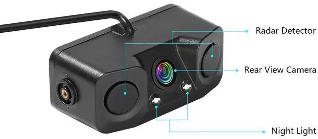 BUZZER: The car backup camera includes 2 radar parking sensors supporting ultrasonic detecting while parking; the buzzer will synchronize warn sound via bi bi bi within distance 1.2 m ^^ 170