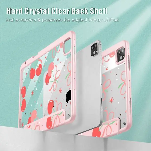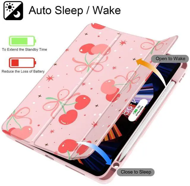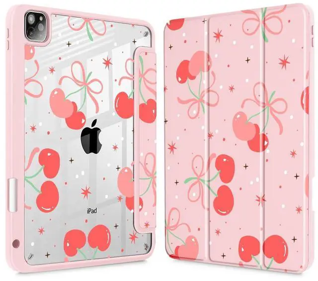 May Chen Case for iPad 12.9 Inch M2 (6th/5th/4th/3rd Generation, 2022/2021/2020/2018), [Penceil Holder] Trifold Stand Auto Wake/Sleep Clear TPU Protection Back Cover, Coquette Cherry