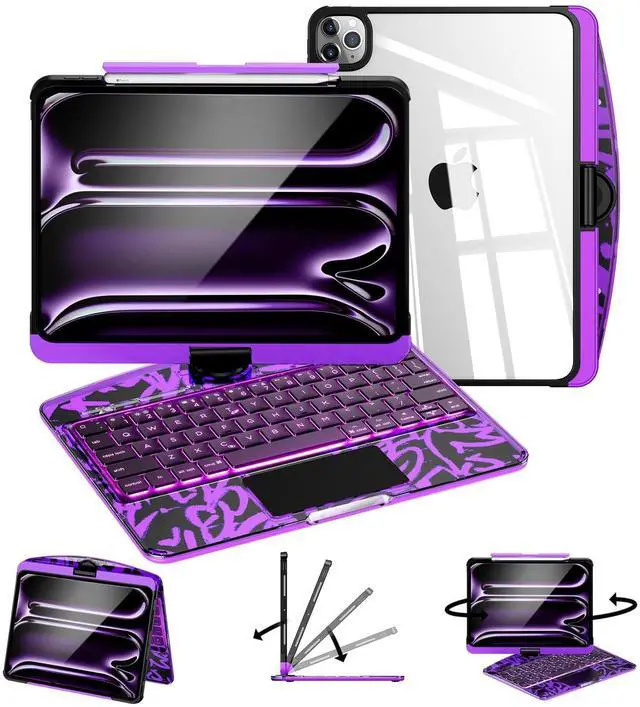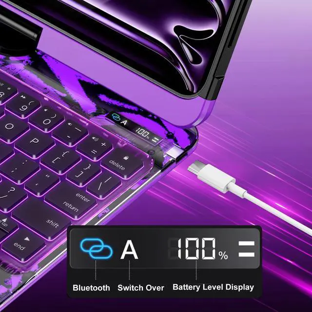 ^^ 7-Color Backlit Wireless KeyboardThis wireless iPad keyboard includes 7 vibrant backlight colors and adjustable brightness levels, making it easy to type in low-light environments like airplanes, classrooms, and late-night work sessions. ^^ Fast Charging & All-Day Battery LifeiPad keyboard fully charges in just 2 hours and delivers long-lasting performance for work, study, and travel. Enjoy a keyboard case that stays powered and ready whenever you need itwithout the hassle of constant recharging. ^^ Precision Multi-Touch TrackpadExperience smooth, accurate control with a multi-gesture touchpad that brings a true laptop-style experience to your transparent keyboard case for iPad.
