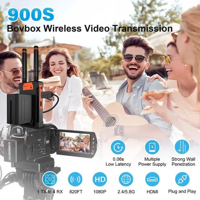 True Plug-and-Play in Seconds, Professional HD Quality& AudioGet started instantly with this wireless HDMI transmitter and receiverno apps, Bluetooth, Wi-Fi, or drivers needed. It captures audio directly via the built-in AMS port and supports 4K input, delivering a stable, crystal-clear 1080P@60Hz output, providing the reliable performance needed for live streaming, precise camera monitoring, and flawless presentations. ^^ Unbeatable 850ft Range & Ultra-Low DelayOur advanced dual-band chip and antenna ensure this wireless video transmitter delivers a rock-solid signal with < 0.06 s latency and penetrates walls. This means real-time control for filmmakers, seamless interaction for streamers, and reliable transmission from the stage to the back of the church.