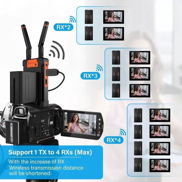 Power Your Entire Team: 1 Transmitter to 4 ReceiversShare your video with up to 4 screens simultaneously using this powerful wireless HDMI extender perfect for directors, clients, and overflow rooms. Powered flexibly by NP-F batteries or USB-C power banks, it's built for all-day events and outdoor shoots.