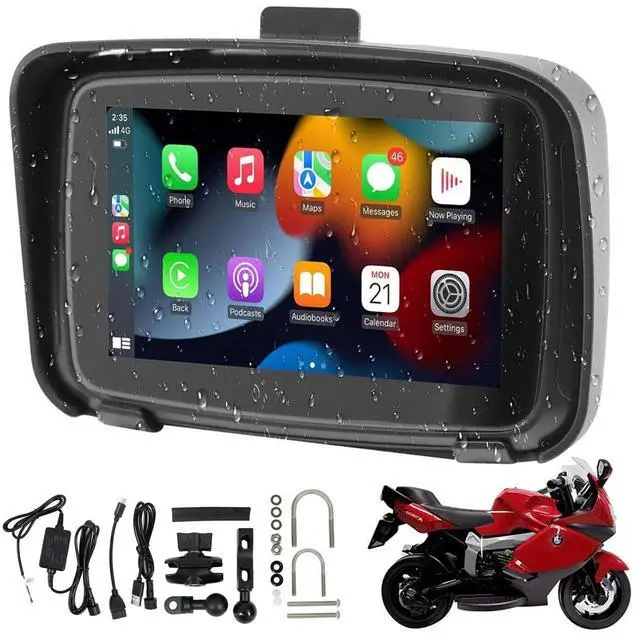 Notice: The portable touchscreen for motorbike does not contain map apps. You can use navigation from the phones Carplay and Android auto function. ^^ Waterproof and Anti-Theft DesignWith a durable IPX7 waterproof design that can withstand even the toughest weather conditions. detachable capacitive touch screen, which provides better anti-theft protection, giving you complete control and peace of mind. With our waterproof and anti-theft design, you can confidently navigate through any weather and terrain knowing that your GPS is secure and protected. ^^ High-Definition Display The 5-inch HD IPS display has a peak brightness of 1000nit, which is clear even in sunlight. With sunshade, not tarnished by the scorching sun. No longer have to worry about the high temperature of the navigation phone and the rapid power consumption. ^^ Easy and Fast Installation, Fit for All Motorcycles This portable carplay screen comes with bracket kits and tools. The bracket kit and screw design make it easy to mount on any motorcycle, and you can mount it on the motorcycle handle, (the wiring is simple, ACC +12V and Ground), the mount guards against drops and vibration.
