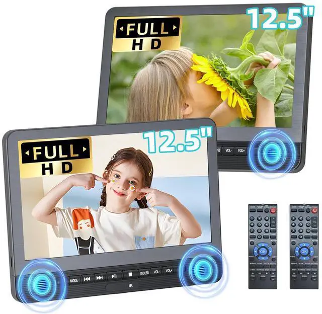 Inch Larger Screen: The DESOBRY car DVD player built with two 12.1 large screens, offer a wider viewing perspective. The dual screen DVD player supports playing different movies or mirroring the same DVD on both screens via a simple AV cable connection. AV OUT enables SYNC playback on your large TV screen, allowing you to enjoy quality leisure time with your whole family ^^