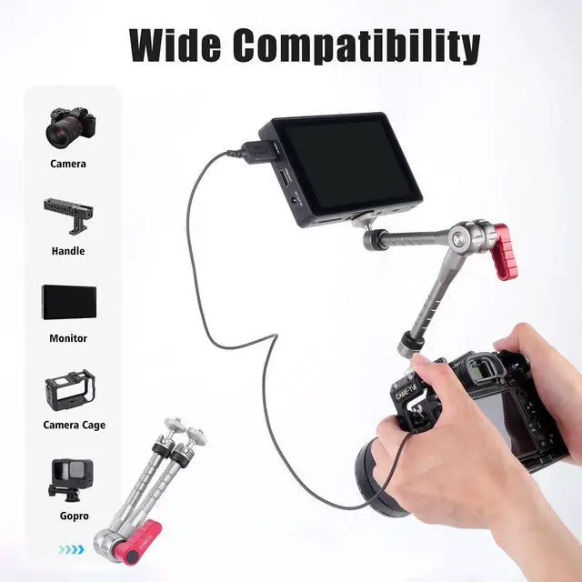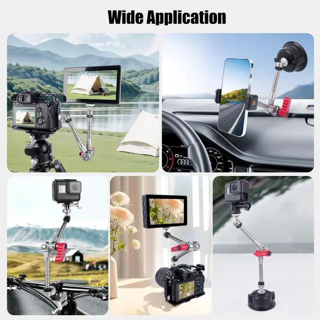 The Magic Arm Ball Head Mount combines precision engineering with versatile functionality. Crafted from lightweight yet durable aluminum, this mount offers 360 rotation and 90 tilt adjustments through a smooth ball head and locking knob, ensuring stable positioning for DSLR cameras, GoPr0, LED lights, and monitors.