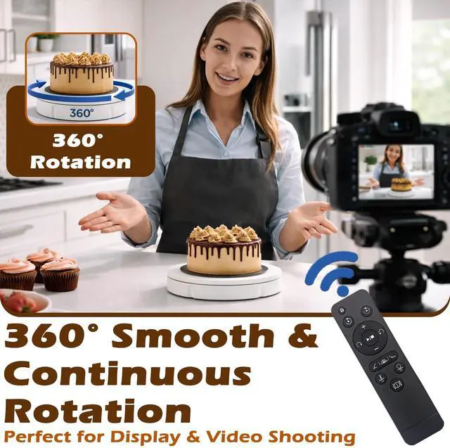 Operating the turntable is effortless, facilitated by the included remote control, enabling precise control over rotation speed and direction without manual intervention. ^^ Silent and Smooth OperationIt is meticulously designed to operate quietly and smoothly, minimizing any disruptions during presentations or photography sessions. Engineered with precision, it guarantees a distraction-free environment, allowing you to showcase your products effortlessly. ^^ Multiple Rotation ModesIt offers a range of rotation modes tailored to diverse scenarios. Select from clockwise or anti-clockwise rotation, intermittent or continuous rotation, specific angle rotations (45/90/180), single rotations, or customize rotation modes.