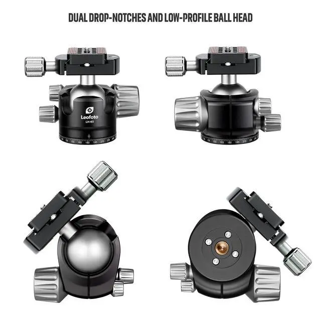 Tilt: Swivel the 40mm ball head at 360 or tilt it at 90 in the dual drop notches for flexible camera positioning. The panning base with a 360 scale enables precise and fluid panorama photography and videographyCompact
