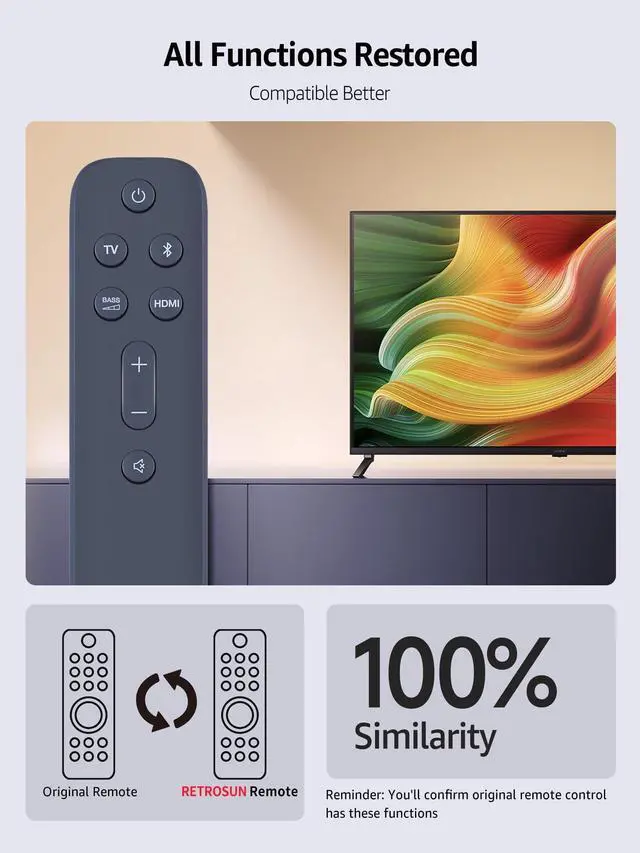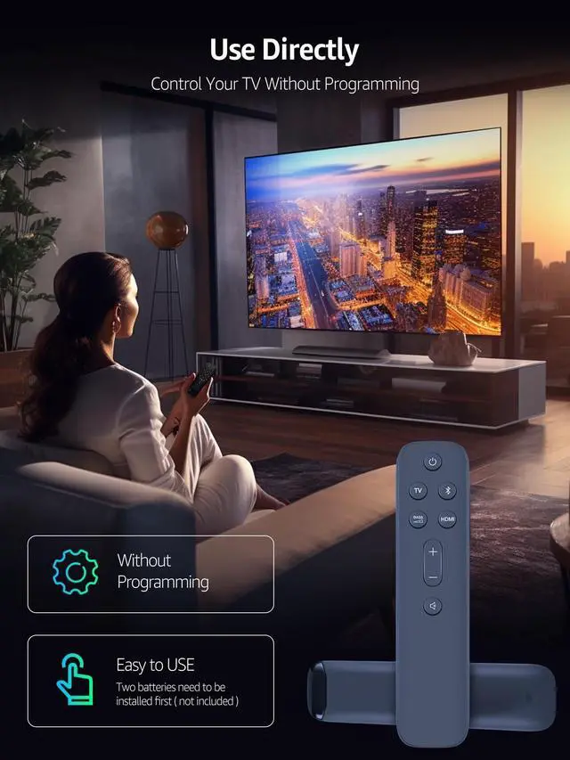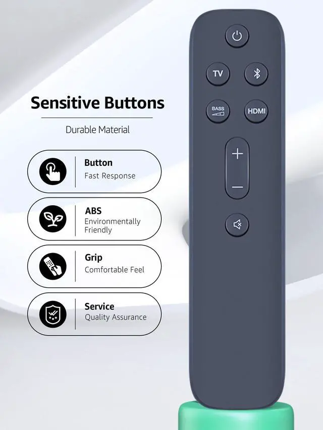 note: batteries are not included ^^ High PerformanceUsing a newly upgraded smart chip, our JBL soundbar remote control has good transmission performance in long-distance transmission, with an accurate control distance of 8 meters/26 feet. The fastest response time is less than 0.2 seconds and supports over 160, 000 clicks with approved testing. ^^ Durability/ComfortThis JBL soundbar remote control is made of high-quality ABS material, which is durable, not easy to break, and has excellent impact resistance and durability. The surface is glazed, smooth and comfortable to the touch, and easy to grip. Silicone buttons are soft, stick to your fingers, and offer excellent durability and stain resistance. ^^ Package Including After-Sales Service1* Replacement Remote Control for jbl soundbarIf your soundbar models is not on the compatible list, please contact us via messaging tool. We can check it for you.