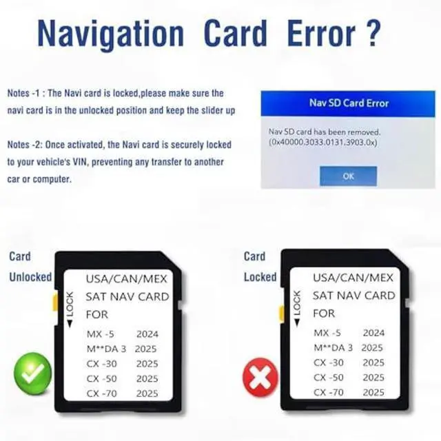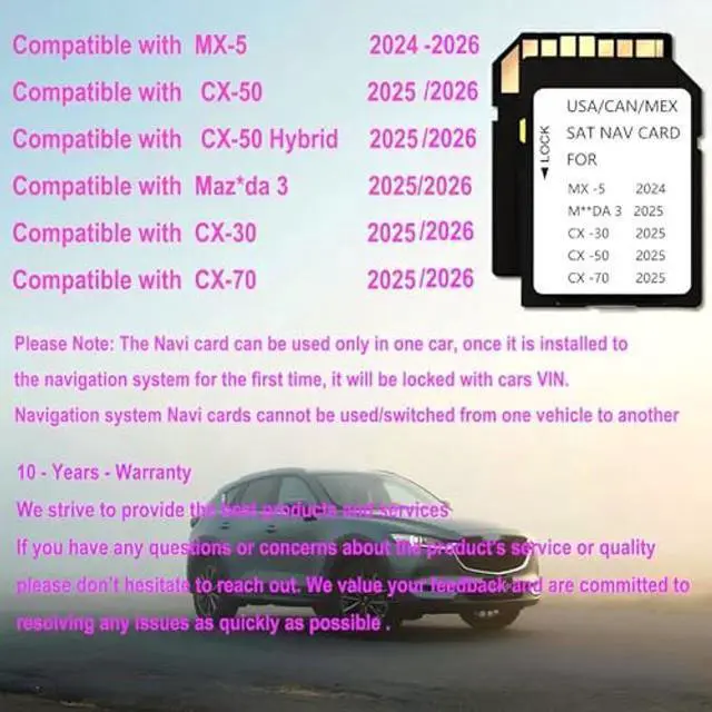 2025 2026 Latest Navigation Memory Card Compatible with Maz*da 3 (2025 2026), MX-5(2024-2026), Cx-30 (2025 2026), Cx50 (2025 2026), CX-50 Hybrid2025 2026, Cx70 (2025 2026) -10 Years Warranty ^^ Compatible with below
