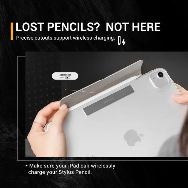 Unlock the full iPad experience: FACET transforms your iPad with 5 versatile angles for any task. Facetime in style, sketch with ease, or watch movies in comfort. Unleash your creative and productive potential. ^^ Coffee Catastrophe? No Sweat - This premium vegan leather folio is stain-resistant, so you can focus on your daily grind, not accidental spills. FACET has got your back (and your iPad). ^^ Never Loose Your Apple Pencil Again - Secure your Apple Pencil with FACET's magnetic closure, so it's never accidentally knocked off - or lost in your bags again! ^^ Unburden Your iPad - FACET's lightweight design keeps you moving freely, ready for any task ahead. ^^ Charge your Apple Pencil Wirelessly - Our precise cutout enables effortless power on your iPad (ensure both devices support wireless charging).