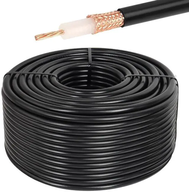 This rg213 coaxial cable is made bare copper inner conductor and the bare copper braid shielding so quality of this rg213 coaxial cable is superior to LMR400 coaxial cable. Bare copper braid shielding for enhanced isolation and EMI resistance ^^ The rugged rg213 coax for high-power handling and low-loss operation. If Power handling, signal strength, and propagation are your concerns, this rg213 coax cable more than meets all your requirements. ^^ This low-attenuation rg213 coaxial cable is low-attenuation coaxial cable, The loss of this 150FT RG213 coaxial cable at 100MHZ signal frequency is about 2.2 dB and the SWR 1.20 ^^ The low-attenuation rg213 coaxial cable is best suited with high-power long-run antenna installations for high-frequency applications such as Broadcast, Ham Radio, CB Radio, Wi-Fi, GSM, Base Station and Mobile Uplink.