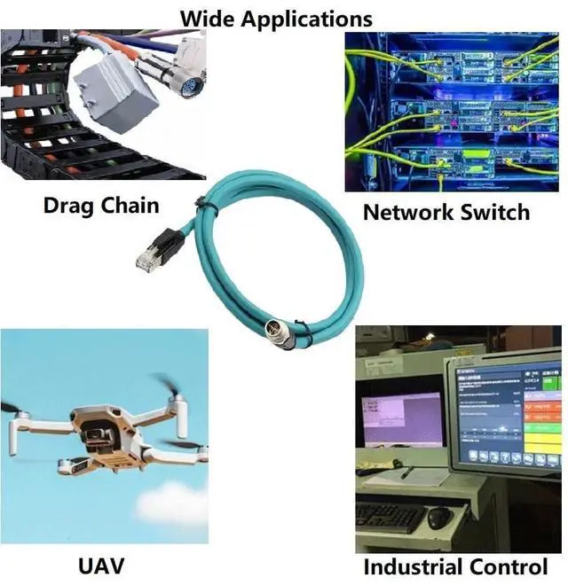 Cable length: 50cm, 1M, 2M, 3M, 5M available. M12 8Pin X coded connector to RJ45 Ethernet Patch Cord. ^^ Ideal for in-sight industrial cameras such as Basler, GigE Vision etc., industrial Ethernet, network applications, sensor, industrial machinery and so on.