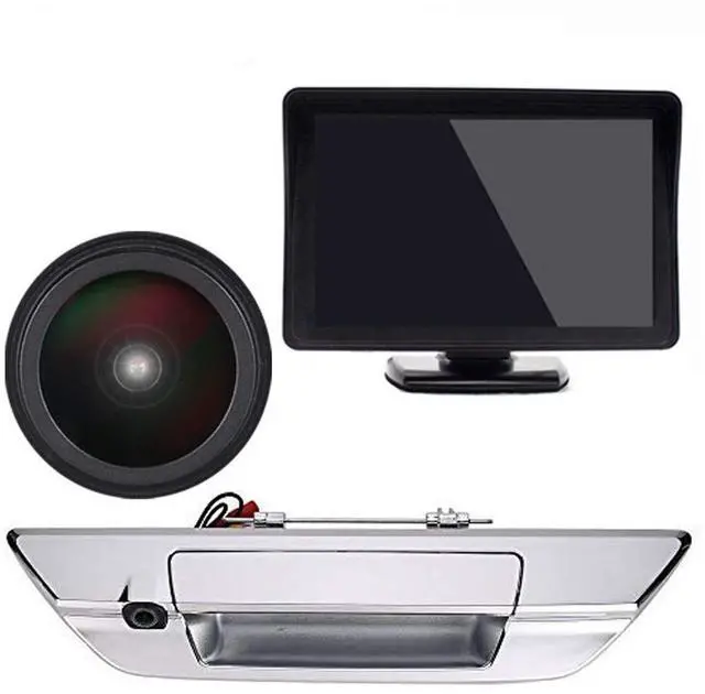 1280 * 720 Pixels HD Car Rear View Trunk Handle Parking Rear View Camera Replacement for Toyota Hilux 8 MK8 Pickup Truck Masters OX AN120 AN130 Revo Recco/Invincible 50 2015-2019(with 7-inch Monitor)