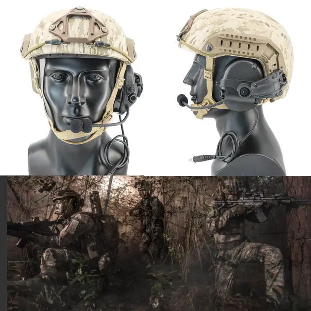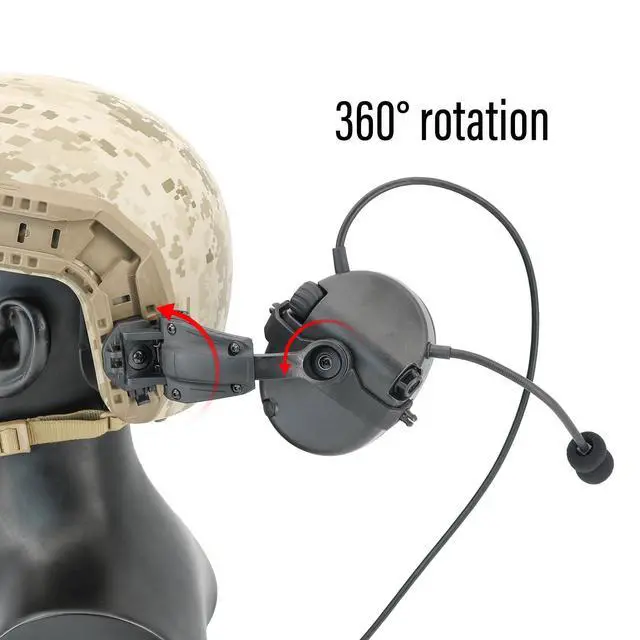 Headset with ARC Rail Adapter Compatible with FAST Helmets, ACH Helmets, MICH Helmets and other helmets with ARC rails on the side Compatible. ^^ Bracket headset rotates 360 and flips up and down. The mount on the headset can also be rotated. The length of the bracket can also be adjusted. ^^ The ear cushions of the headset are made of silicone for extra softness and easy cleaning. ^^ The single-sided headset needs to be worn on only one side of the helmet, using one ear to answer and communicate. ^^ Equipped with KEN plug U94 PTT adapter, compatible with Baofeng UV5R UV82 walkie-talkies
