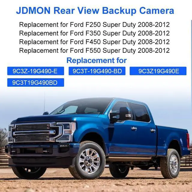 Fitment: JDMON Reverse camera replacement for Ford F250 Super Duty Pickup 2008-2012, F350 Super Duty Pickup 2008-2012, F450 Super Duty Pickup 2008-2012, F550 Super Duty Pickup 2008-2012. Installation instructions are not included, it is recommended to install under the guidance of professionals ^^