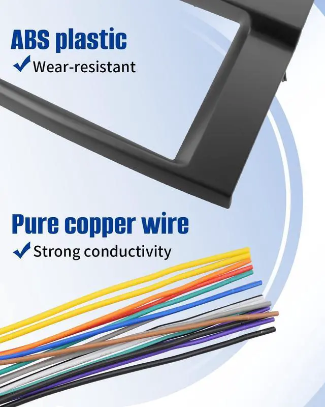 Recommended installation by professionalsPackage includes: 1* Radio trim ring1 set of fixing cover1* Antenna adapter1* Screw1* Machine trim plate1* Radio wiring harness1* Double DIN trim bracket