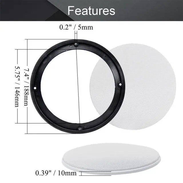 Main Color: White ^^ Easy to install- Mesh speaker grill has distribute screws, makes you more convenient installation. Just put the screws in and screw it directly to fix your speaker, which is easy to install. ^^ Application- Speaker grill cover is great for speaker cabinet, home speaker or speaker. They are also suitable for DIY speakers decorative circle. ^^ Package- 4Pcs x Speaker Grill Mesh + 16 Screws. (Please check the corresponding size carefully before ordering)