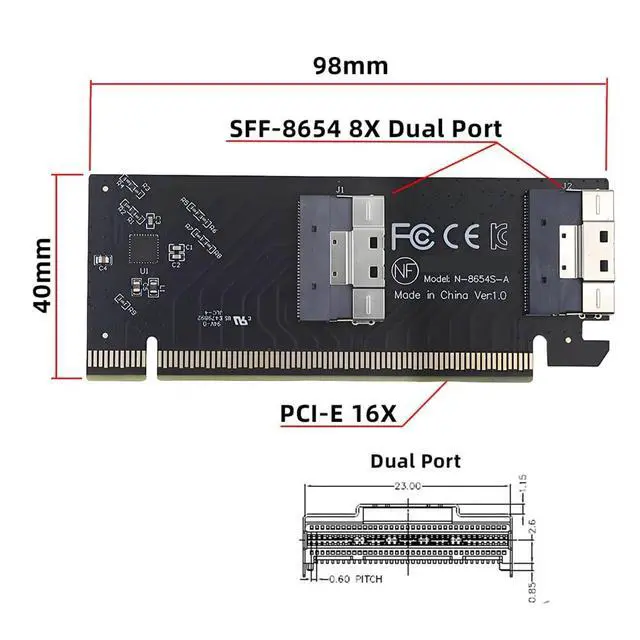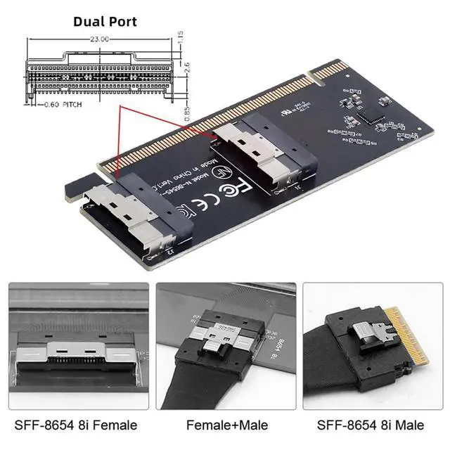 1)One detachable PCIE PCI-Express 16x motherboard can be connected, The converter can be installed into the system internally through the SFF-8654 interface. Internal Low Profile PCBA, Without bracket. ^^ 2)It can be connected e. g. one SSD or eGPU Graphics Card by using an optional cable. Suitable for small hosts, desktops, laptops, etc. to convert PCIE sockets to SFF-8654 8X sockets, with fixing holes for fixing. ^^ 3)It transmits PCI Express 4.0 signals using the PCIE protocol; Support PCIE 4.0 data transmission, Data transfer rate up to 64Gbps, Support connecting GPU graphics card, SSD, expansion card, etc.