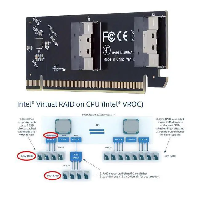 ^^ 4)High-speed data transfer: The adapter is designed for use with ssd that use SFF-8654 8x connectors, allowing for fast and reliable data transfer at speeds of up to 64Gbps. ^^ 5)Only supports motherboards with detachable PCI-E channels; Control the operation of four disks based on the motherboard PCIE channel, The motherboard without PCIE signal split can only recognize one disk.