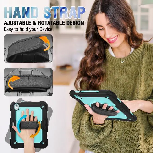Hand Strap: 360-degree rotating swivel stand supports position of 3 angles(Vertical, Horizontal, and Halfway between), ideal for watching videos, conferences and travelling. Soft rotating handle strap prevents falling of iPad Air 11 7th/6th tablet, featuring convenient use for teachers, students, waiters, doctors, nurses and conference presenters.