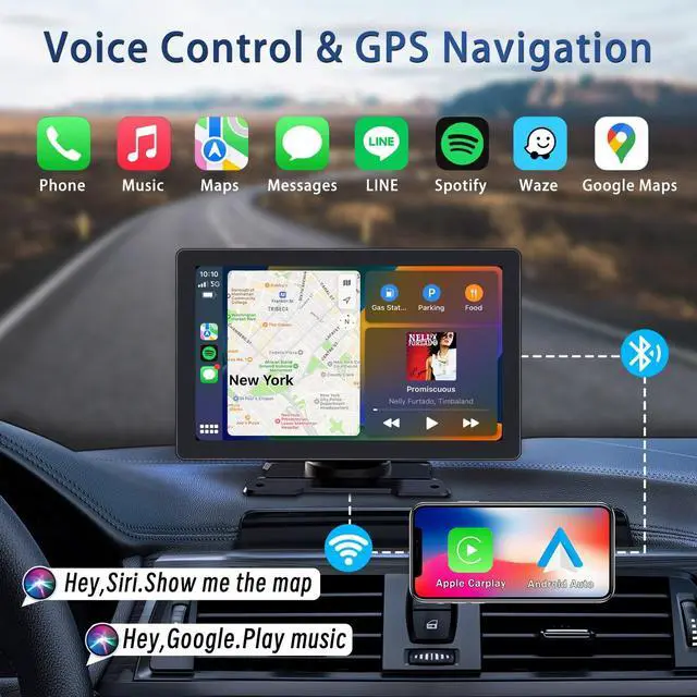 CarPlay and Android Auto ScreenWith Wireless Apple CarPlay and Android Auto, this plug-and-play dual din car stereo just connect it to your smartphone and access map navigation, calling, email, notifications, music and more with the help of Siri/Google Assistant ^^ 9 Inch HD Touch ScreenThis SETHDA portable apple car play screen features a resolution of 1024*600 9 inch HD touchscreen and supports play 1080P videos. Even outdoors or scorching sun day, you can enjoy the high-definition large-screen video experience ^^ Online Maps and Real-Time GPSThe 9 inch portable apple carplay screen provides real-time location and GPS navigation without delay.