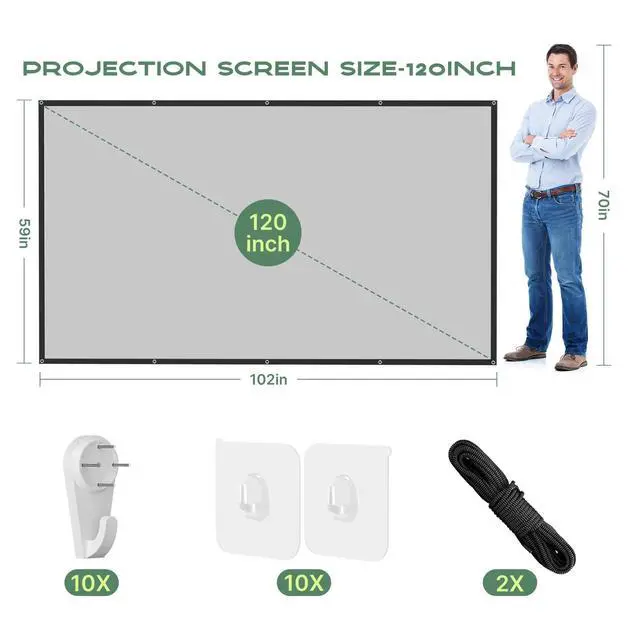 Watch What You Want, When You Want! Remember when you could only really use your projector at night? That's a pain! This screen lets you watch movies, sports, or play games whenever the mood strikes, day or night. No more being tied to a dark room schedule enjoy big-screen entertainment on your terms! ^^ Versatile ApplicationIdeal for both indoor and outdoor use, perfect as a home theater screen, outdoor movie screen, or for business presentations ^^ Portable & Easy InstallationFeatures a foldable design for easy storage and transport.