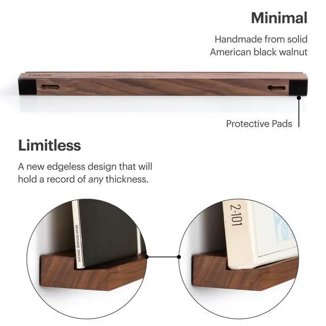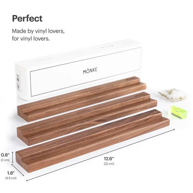 MONKE presents the VRS2, a minimalistic vinyl record shelf to display your favorite or now-playing records. This elegant floating shelf is made from solid wood and will fit a record of any size and thickness. Whether you want to display 1 record or a grid of 12, the VRS2 is a great way to showcase your favorite vinyl cover art in any room!