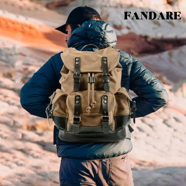 FANDARE Vintage Backpack for Women & Men 15.6 Inch Laptop Backpack Large Capacity Canvas College Bookbag Travel Hiking Work Commuter Daypack Light Brown