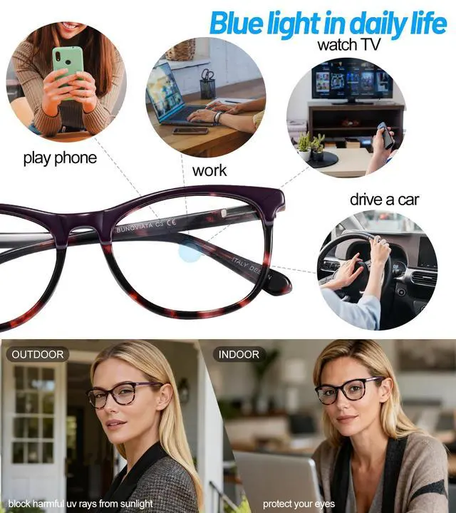 Blue Light Glasses women: AEZUNI blue light blocking glasses for women can effectively block harmful blue light that causes blurriness, eye strain, or headachesperfect for work, binge-watching shows, or scrolling social media. No more rubbing your eyes mid-day. Reduce eye fatigue, headache and help you sleep better.