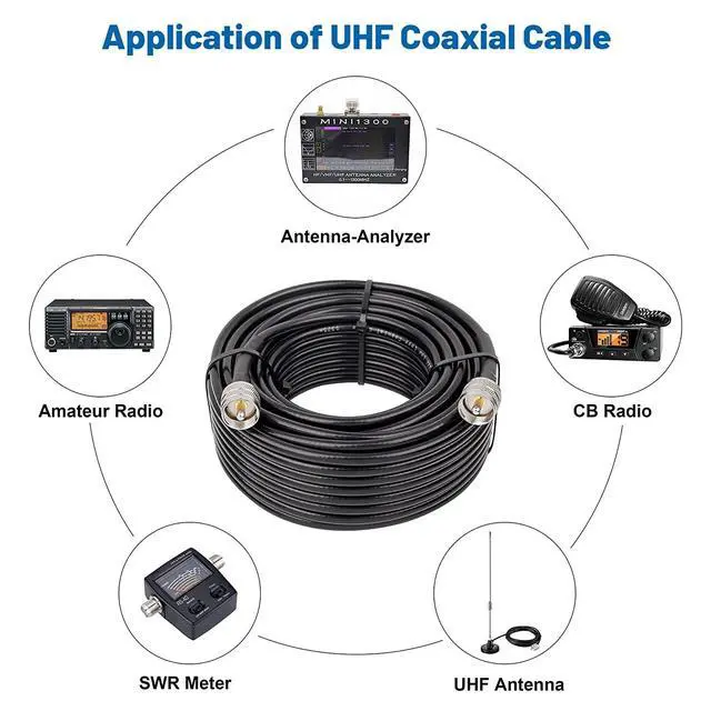 • Applications -- This cb coax cable is widly used for vhf marine antenna,cb radio,ham radio,vhf radio,antenna analyzer,monitor,tuner,dummy load,SWR meter and ect.