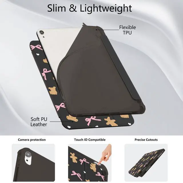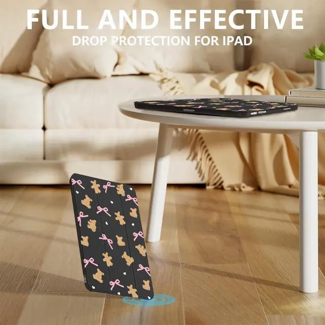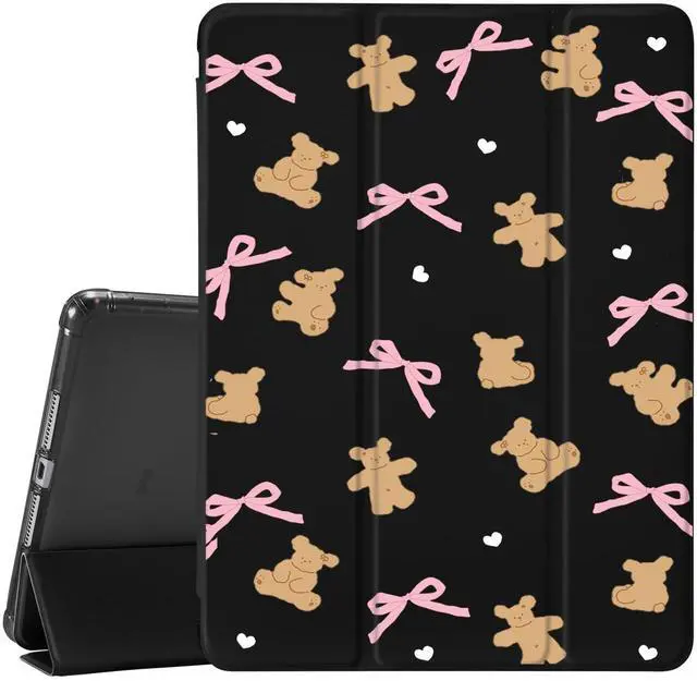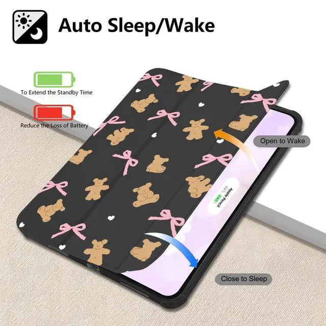 Automatic sleep/wake up&built-in pen holder: This cute lovely bows bear case for ipad can be opened without touching a button. When the case is opened, it will automatically wake up. When you close it, the pad will automatically enter sleep mode. Helps to extend battery life. This cartoon unique design case for ipad has a hidden slot designed specifically for storing pencils, making it easy to carry pencils with you.