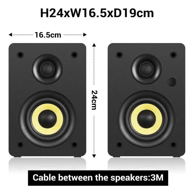 DUAL-MODE BOOKSHELF SPEAKERSOne-key switch between Studio Monitor and HiFi Mode. Studio Mode delivers accurate sound for professional mixing, recording, and content creation, while HiFi Mode with upgraded 3D Sound Field offers immersive, warm tonesperfect for daily music, movies, and TV, bringing a theater-like experience to your home. Suitable for creators, streamers, and everyday home audio lovers alike. ^^ 4 INCH CARBON FIBER SPEAKER & 25MM SILK DOME TWEETEREquipped with a 4-inch carbon fiber woofer (Sanyun proprietary material + multi-layer voice coil) and a 25mm silk dome tweeter, this bookshelf speaker delivers perfectly balanced sound: warm, natural mids, tight, powerful bass, and smooth, fatigue-free highs. The upgraded driver design ensures accurate sound reproduction for both studio monitoring and casual listening. ^^ PROFESSIONAL LAB TUNING & MDF WOOD ENCLOSUREProfessionally tuned in the lab to deliver a flat frequency responseideal for studio use, yet equally perfect for daily listening. The dense MDF wood cabinet effectively minimizes resonance and distortion, restoring the original sound for pure, enjoyable audio in both professional and home settings. ^^ 6.35MM TRS BALANCED INPUTBuilt-in 6.35 mm TRS balanced input works smoothly with mixers, audio interfaces, guitars, and pianos, making it ideal for home creators and beginners. It also pairs easily with daily devices, offering great versatility for both music creation and casual entertainment. ^^ MULTIPLE INTERFACES & CONVENIENT REMOTE CONTROL6 versatile connection methods: Optical, Coaxial, TRS, Aux, Bluetooth 5.4, and USB (24bit DAC) easily connect to your turntable, TV, PC, phone, or other daily devices. Enjoy rich, immersive sound for all your daily entertainment. The included remote controls volume, input, and power, making it effortless to use at home.