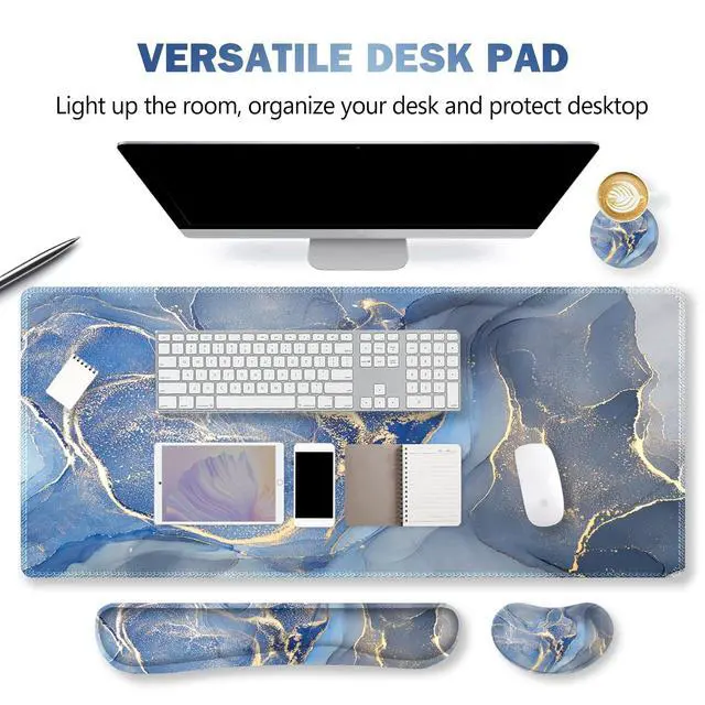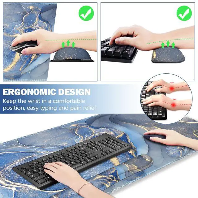 Included: 1x desk pad (35x 15.5 inch)1x keyboard wrist rest( 17.3 x 3.3 inch)1x mouse wrist rest( 5.4 x 2.9 inch)1x cup coaster( 3.9 x 3.9 inch)Order ArtSo Mouse Wrist Pads today and say goodbye to uncomfortable and painful typing.