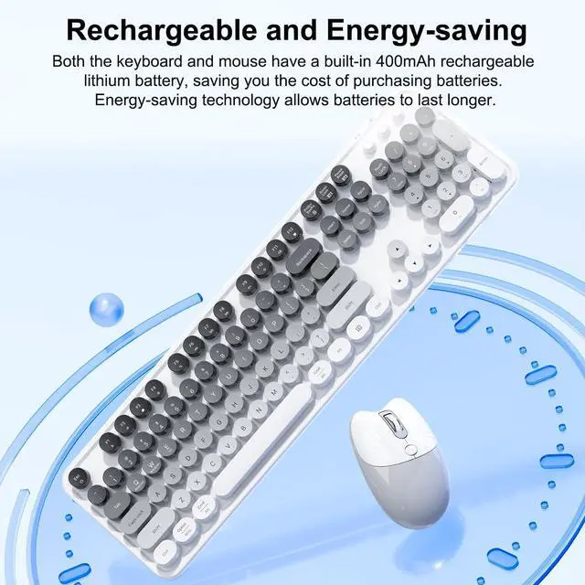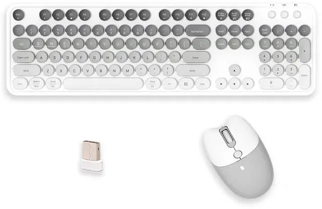 [Full-size Colorful Keyboard] Each keyboard features a refreshing and colorful design, giving you more inspiration in your work and study. The 100% full-size layout includes all keys, making it easier to use without being bothered by missing functions. ^^ [Retro Round Keycaps] The inspiration for these cute round keys comes from vintage typewriter that offers the visual enjoyment and retro feel of the type. The round button design, which is based on research and development based on the size of the finger-keycap contact area, provides a more comfortable typing experience. ^^ [Bluetooth/ 2.4G Wireless Connection] When using 2.4G connection, the device needs to have a USB port.