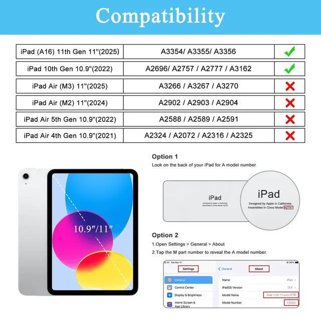 Number: A3354/A3355/A3356) & iPad 10th generation 10.9 inch 2022(Model