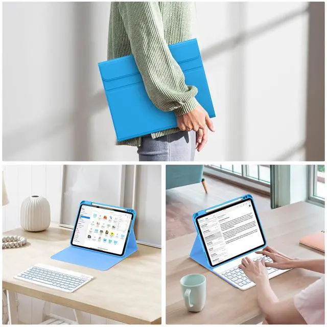 SLEEP/WAKE]: The keyboard cover for iPad (A16) 11th/10th generation with built-in magnets support auto sleep and wake function to protect and save the battery life, and prolonging the time use your iPad