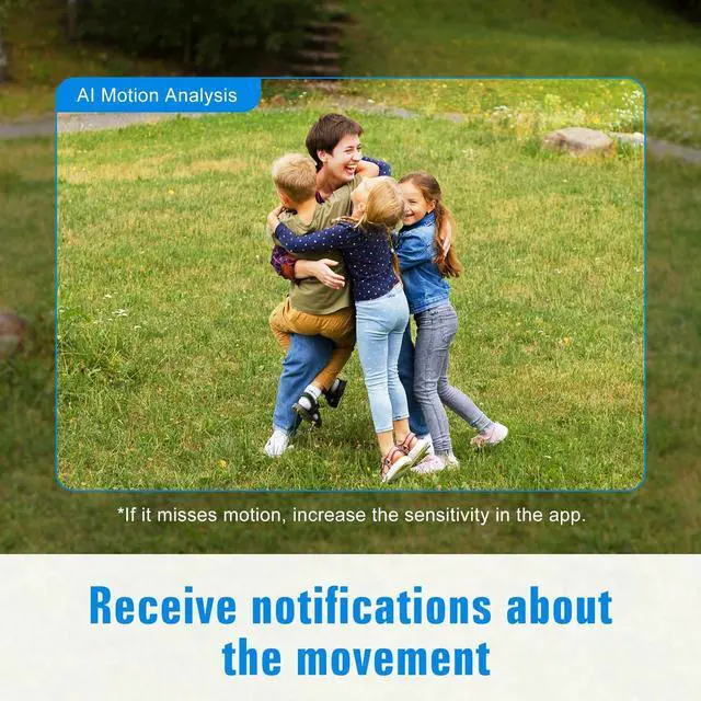 2K FHD Clarity & Color Night Vision2K Wireless Outdoor Camera 4x clearer than 1080P, wide-angle view, dual night vision (color+infrared, 33ft range), and remote mobile app access for live/recorded footage. ^^ 100% Wire Free & Rechargeable Battery CamFully wireless home security cameras deliver 15 months of use per charge. IP65-rated for all-weather performance, they eliminate the need for power/network cables. Easy to install indoors/outdoors with included mounting tools. ( 2.4GH z Wi-Fi only. ) ^^ Smart PIR Motion Detection with AI RecognitionFeaturing advanced AI motion detection, this outdoor security camera accurately identifies people, vehicles, pets, and packages.