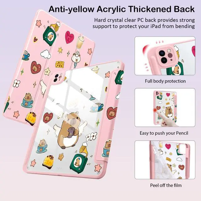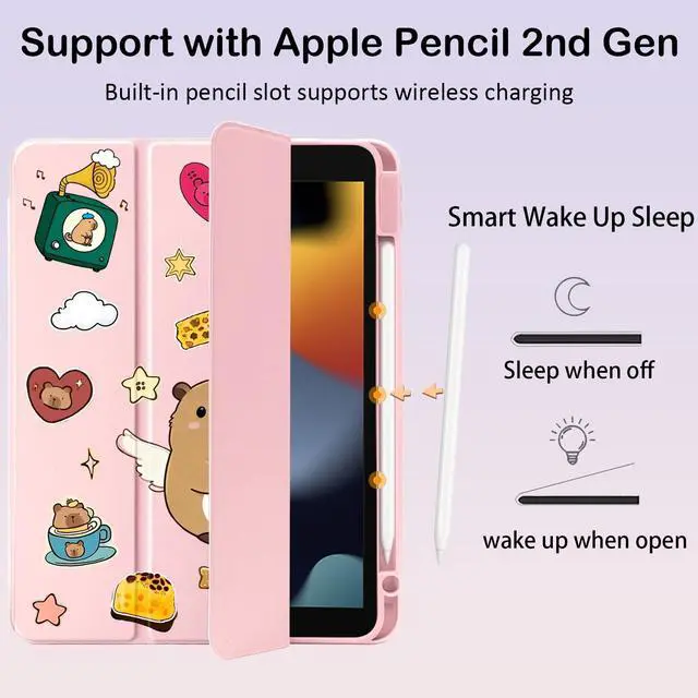 Please Note: The pen holder of this model is located on the left side of the iPad ^^ Well made with PU exterior, microfiber lining and soft silicone frame and clear acrylic back cover, offers full body protection from drops and scratches ^^ Built-in Apple Pencil holder, grab your apple pencil effortlessly whenever you want, keep the apple pencil as safe as your iPad all the time ^^ Cover has flip capability to transform the case into a viewing stand and typing stand. Available in a variety of bright colors and unique pattern ^^ Built-in magnetic strip provides auto sleep / wake function. Precise cutout and design allow easy access to all ports, sensors, speakers, cameras