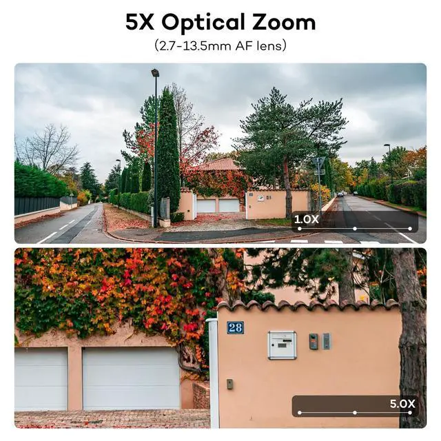 5X Optical Zoom-- 2.7 - 13.5 mm motorized varifocal auto focus lens, zoom in 5 times to get closer and sharper details. ^^ 4K Superior Definition-- 8 million pixels, 130 diagonal field of view. ^^ 2 Way Talk-- Built-in microphone and speaker. ^^ Smart Color Night Vision-- AI human vehicle detection activate bright spotlights, deliver color night vision. ^^ Smart AI Human Vehicle Detection-- Reduce false alarms and save storage space. ^^ IP66 Durable Housing-- Metal housing, indoors or outdoors, fully weatherproof. ^^ Infrared Lights-- Enable infrared lights automatically at night, IR night vision up to 130ft.