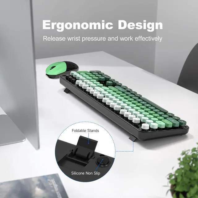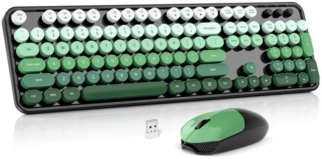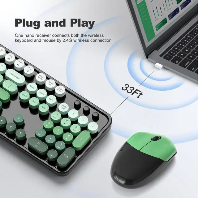 Introducing the Wireless Keyboard and Mouse Combo, a retro-inspired set that combines functionality with style. This full-size keyboard and mouse duo features a 2.4G plug-and-play connection, allowing you to seamlessly integrate it with your Windows computer, desktop, PC, or notebook. The typewriter-inspired round keycaps and colorful pink design add a touch of nostalgia and personality to your workspace. With its comfortable and ergonomic design, this combo ensures effortless typing and precise cursor control. Experience the perfect blend of vintage charm and modern convenience with the Wireless Keyboard and Mouse Combo.