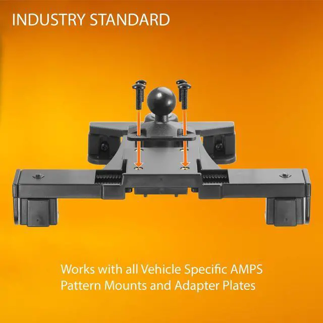 The iBOLT TabDock Dock'n Lock is a replacement part or additional tablet holder for all iBOLT Mounts and Industry-standard AMPS pattern mounts and adapters. ADJUSTABLE - Each holder features hidden screw adjustment so the holder can not be adjusted without unlocking the cradle. Once you adjust the holder to the size of your tablet and place your tablet within the cradle, the screws are covered by your device making them inaccessible to thieves. UNIVERSAL DESIGN - fits all Tablets 7-10 inch tablets in screen size (Examples: iPad, Nexus, Sony Xperia, Samsung Galaxy Tab A, Samsung Tab E, iPad Air, Google Nexus, Asus VivoTab). The tablet holder adjusts from 7.75 -12 wide (device height measurement) and 5.5 - 8.5 tall ( Devices width measurement). WORKS WITH all Industry-standard AMPS Pattern mounts and adapters: Commonly used as an additional holding option for with iBOLTs IBBZ-33921 or IBBZ-33791 kits and other industry-standard AMPS pattern mounts / arms. Attach a mount to the tablet holder using our included screws with a star-shaped pattern. The special-shaped screw drill bit with your kit so installation and adjustment purposes. This wards off most intruders from removing the tablet holder from the mount to take your device. Includes one iBOLT TabDock Dock'n Lock Tablet holder with Screws to attach to a mount of your choice. All additional adapters/devices shown in the images are not included with this product, and are only used to demonstrate the use of the product.