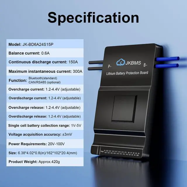 Enhanced Safety: JKBMS offers multi-layer protection, including safeguards against overcharge, overdischarge, overcurrent, short-circuit, and temperature extremes, ensuring long-lasting reliability and battery health ^^