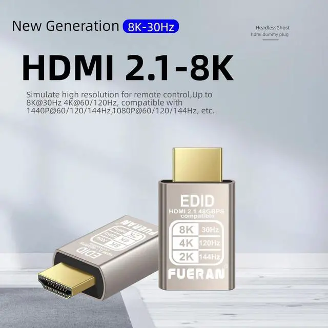 (Notice: The graphics card interface must support HDMI 2.1 version to achieve 4K/120HZ refresh rate) ^^ hdmi dummy plug Simple headless ghost display emulator Plug & Play - No drivers, no software, no power cables or configuration required. The latest technology requires extremely low power and emits negligible heat Guaranteed stability for cryptocurrency mining, video rendering, and simulation mirroring. Not an HDMI Transmitter/Receiver ^^