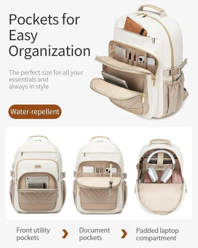 Pockets: Practical Backpack with 5 zipper compartments and 14 pockets help keep items organized, from electronic and binders to smaller essentials like pens and keys ^^ Work Bag with